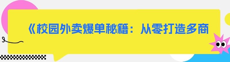 编辑 《校园外卖爆单秘籍:从零打造多商家入驻的火爆平台》