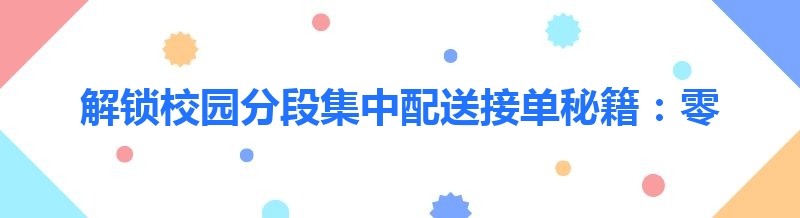 解锁校园分段集中配送接单秘籍:零基础也能轻松上手