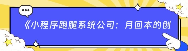 《小程序跑腿系统公司:月回本的创业秘籍大公开》