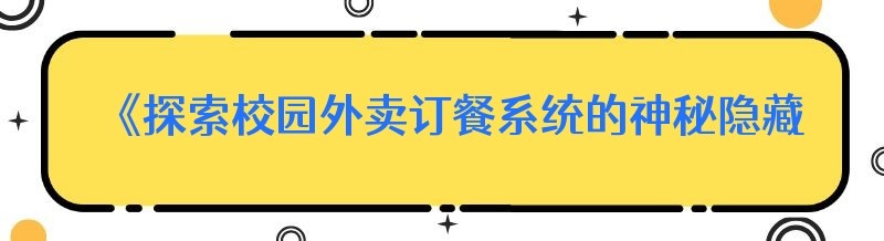 《探索校园外卖订餐系统的神秘隐藏技巧》