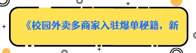 《校园外卖多商家入驻爆单秘籍,新手必看!》