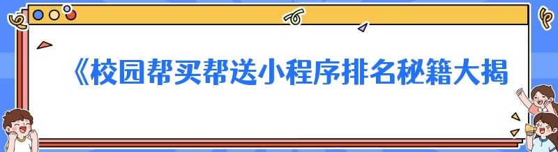 《校园帮买帮送小程序排名秘籍大揭秘》