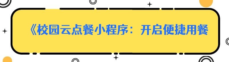 编辑 《校园云点餐小程序:开启便捷用餐新时代》