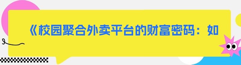 《校园聚合外卖平台的财富密码:如何轻松赚钱》