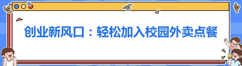 创业新风口:轻松加入校园外卖点餐系统,开启财富之旅