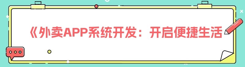 《外卖APP系统开发:开启便捷生活新时代》