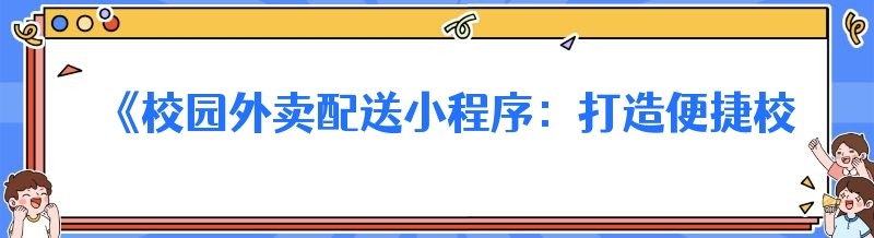 - 《校园外卖配送搭建指南:开启便捷校园生活新篇章》