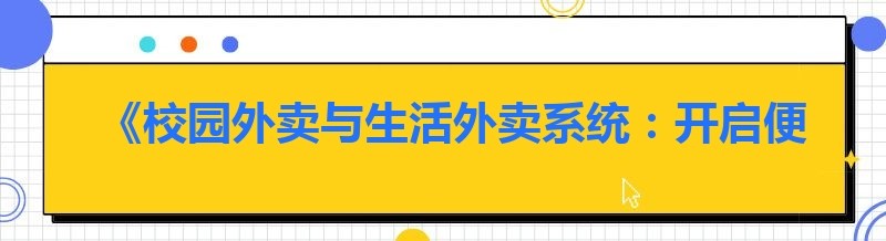 - 《校园外卖配送搭建指南:开启便捷校园生活新篇章》