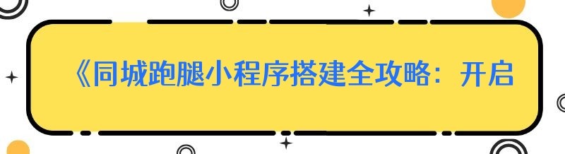 《同城跑腿小程序搭建全攻略:开启便捷服务新时代》