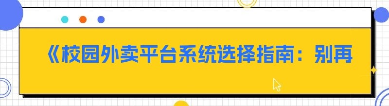 《校园外卖平台系统选择指南:别再为选错而后悔》