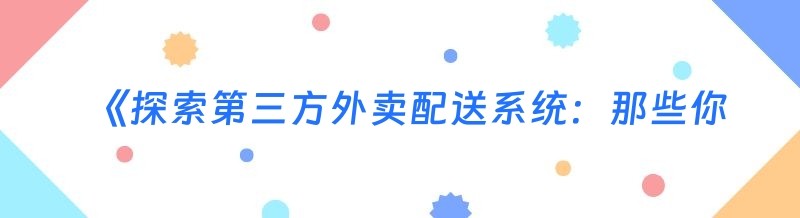 《探索第三方外卖配送系统:那些你可能错过的宝藏》