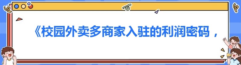 《校园外卖多商家入驻的利润密码,新手必知要点大揭秘》