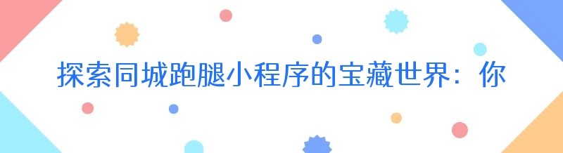 探索同城跑腿小程序的宝藏世界:你不可错过的优质之选