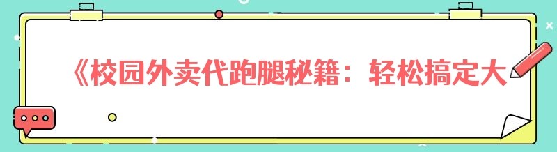 编辑 《校园外卖代跑腿秘籍:轻松搞定大学生》
