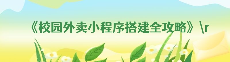 《校园外卖小程序搭建全攻略》