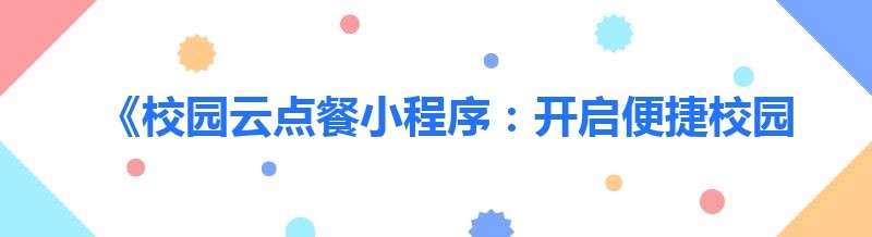 《校园云点餐小程序:开启便捷校园生活新时代》