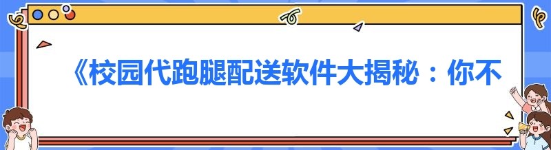 《校园代跑腿配送软件大揭秘:你不知道的那些事儿》