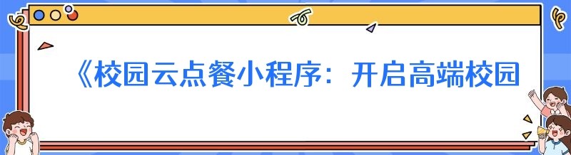 《校园云点餐小程序:开启高端校园餐饮新体验》