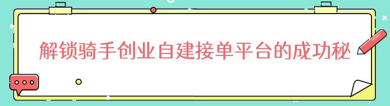 编辑 解锁骑手创业自建接单平台的成功秘籍