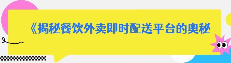 《揭秘餐饮外卖即时配送平台的奥秘,你还在等什么?》