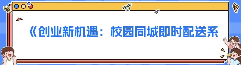 《创业新机遇:校园同城即时配送系统,普通人也能轻松驾驭》