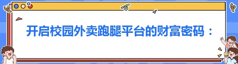 开启校园外卖跑腿平台的财富密码:从0到1的实战指南