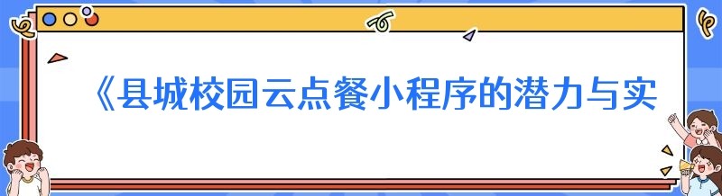 在数字化时代的浪潮下,校园云点餐小程序正逐渐成为校园餐饮服务的新趋势。对于县城来说,这是否也是一个值得探索的领域呢?本文将深入探讨县城适合做校园云点餐小程序的原因以及一些隐藏技巧,帮助您更好地把握这一商机。