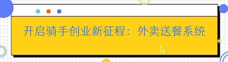 开启骑手创业新征程:外卖送餐系统全攻略