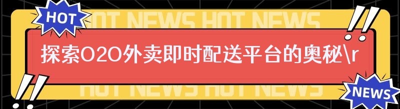 在这个快节奏的时代,O2O外卖即时配送平台如同一颗璀璨的明星,照亮了人们的生活。无论是忙碌的上班族,还是宅家的学生党,只需轻点几下手机屏幕,美味的餐食就能在短时间内送到手中。那么,O2O外卖即时配送平台究竟是如何运作的呢?它又有哪些优势和挑战呢?让我们一起揭开它神秘的面纱。