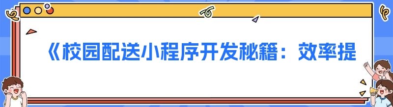 《校园配送小程序开发秘籍:效率提升的关键要点》