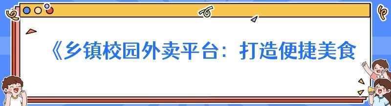 《乡镇校园外卖平台:打造便捷美食新体验》