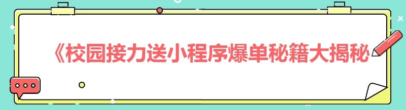 《校园接力送小程序爆单秘籍大揭秘!》