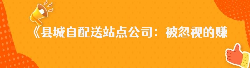 《县城自配送站点公司:被忽视的赚钱宝藏》