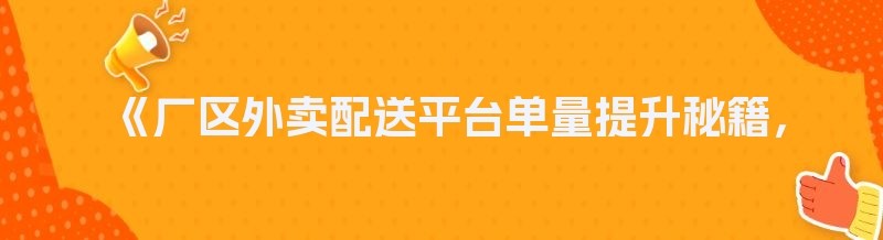 《厂区外卖配送平台单量提升秘籍,你掌握了吗?》