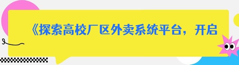 - 《校园外卖配送搭建指南:开启便捷校园生活新篇章》