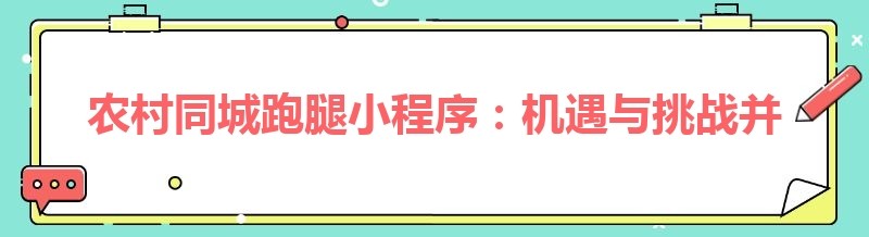 农村同城跑腿小程序:机遇与挑战并存的新选择