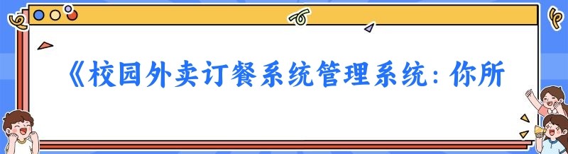 《校园外卖订餐系统管理系统:你所不知道的那些事儿》