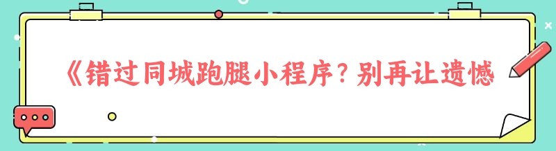 编辑 《错过同城跑腿小程序?别再让遗憾继续!》