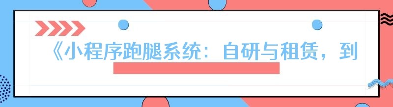 《小程序跑腿系统:自研与租赁,到底该如何抉择?》