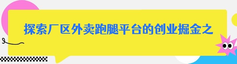 编辑 探索厂区外卖跑腿平台的创业掘金之路