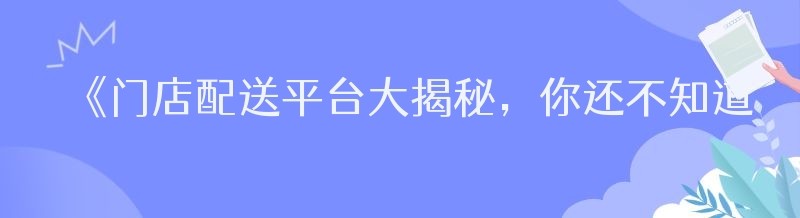 《门店配送平台大揭秘,你还不知道这些吗?》