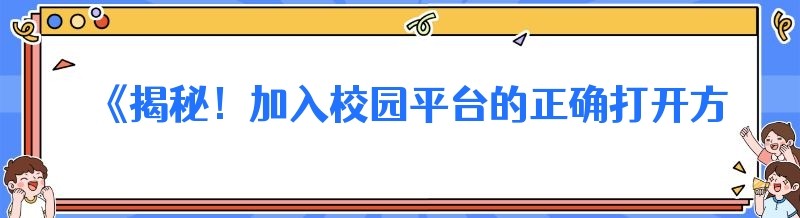 《揭秘!加入校园平台的正确打开方式,你做对了吗?》