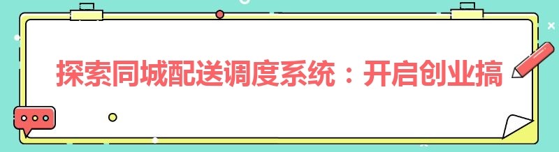 探索同城配送调度系统:开启创业搞钱新征程