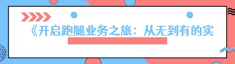 《开启跑腿业务之旅:从无到有的实用攻略》