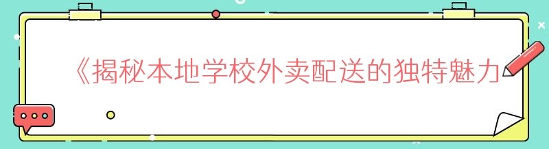 《揭秘本地学校外卖配送的独特魅力,你还在等什么?》