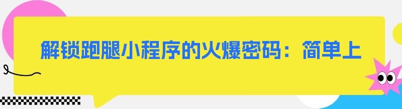 解锁跑腿小程序的火爆密码:简单上手,一触即发