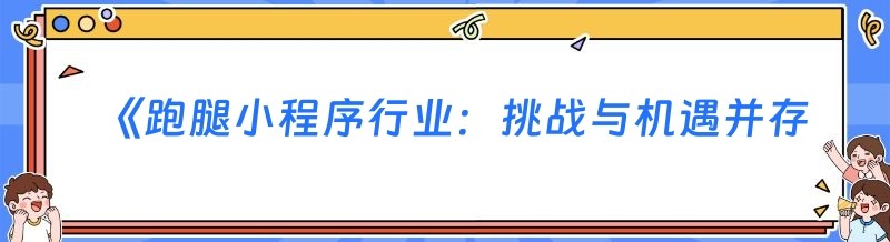 《跑腿小程序行业:挑战与机遇并存,核心策略助你突围》