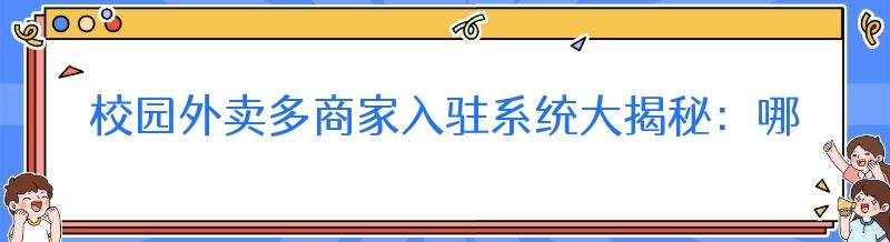 校园外卖多商家入驻系统大揭秘:哪个才是最佳之选?