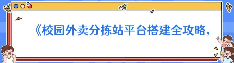 - 《校园外卖分拣站平台搭建全攻略:新手必知的关键要点》