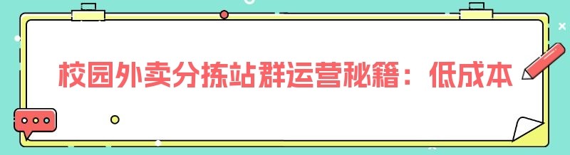 在当今竞争激烈的校园外卖市场中,如何以低成本运营好校园外卖分拣站群,成为了众多外卖从业者关注的焦点。本文将为您详细介绍一些实用的运营技巧,帮助您轻松搞定校园外卖分拣站群的运营。